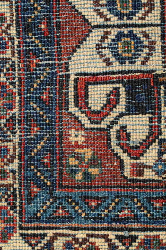 Knot density is about 160 symmetric knots per square inch on a cotton foundation.
