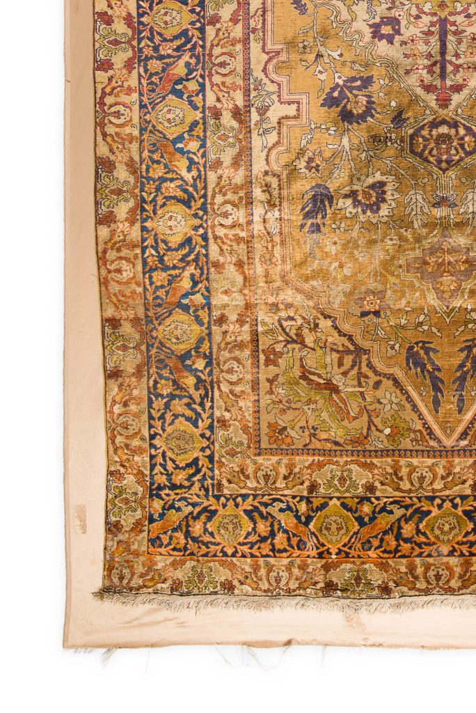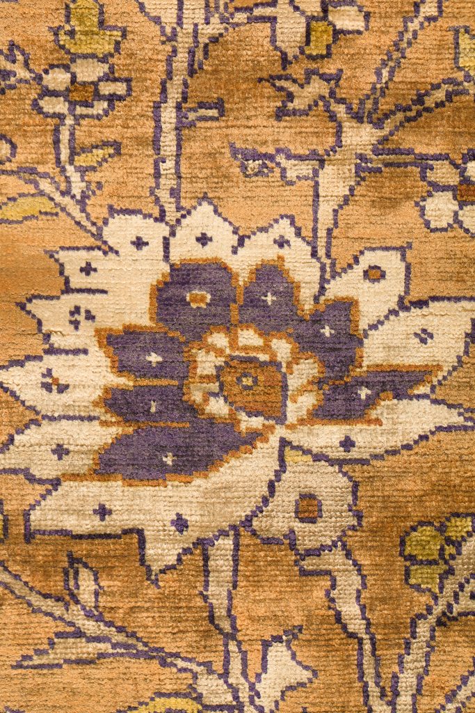 Silk rugs have an unmistakable luminescence, sheen and sumptuous soft texture. This luxurious fiber has a magical effect when used to craft rugs or when used as decorative accents to give designs a shimmering glow. Thinner than a human hair, silk fibers have a crystalline structure that refracts ambient light and produces the sleek shiny look that this natural fiber is known for. Although the process for unwinding thousands of feet of silk from a cocoon is tedious, the stunning result is well worth the labor. These magnificent carpets were produced extensively in India, China, Persia and Turkey. Silk rugs have an incomparable beauty and luxurious appearance that makes them exceptionally desirable. When displayed on the floor or on a wall, silk rugs make an impressive statement.All natural dyes are paramount for the carpet to have more than just decorative value. Beyond that, various dyers had varying levels of skill and invested different lengths of time in dyeing the yarns. The “quality of color”–its radiance and level of nuance within each color–is centrally important. Certain rare colors such as Tyrian purple, saffron yellow, cochineal rose and greens add to the carpet’s value
