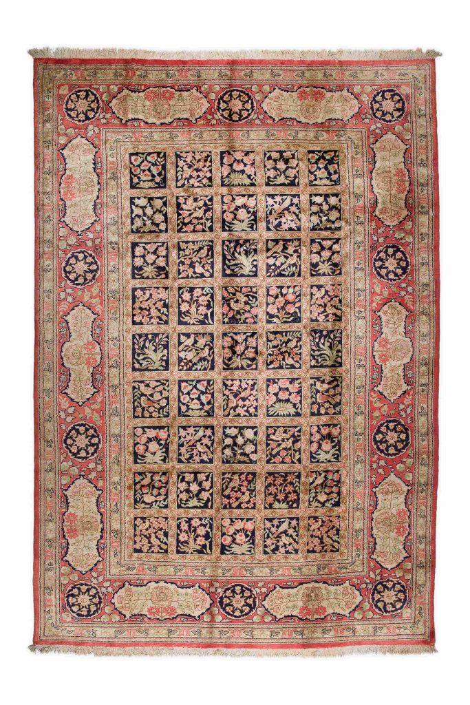 Silk Rugs – Silk Carpets and rugs are the most luxurious productions of their kind. The silk textile production began in China, although silk rugs are unattested there until the seventeenth century. Silk textile manufacture was well established in Persia by the Sassanian Period (third to seventh centuries). Consequently, it would have been possible for the Persians of this period or those of Early Islamic times to have adapted silk to rug production. But it is so far unclear whether China or the Islamic Orient initiated the manufacture of silk carpets. At any rate, the earliest extant of all the antique handmade silk rugs are in fact the handmade Persian silk rugs of the Safavid Period. Eventually rugs with all or part silk construction came to be made in virtually all Oriental rug – producing regions – Persia, Turkey, Turkestan, Tibet, and China. In the finest examples, not only the pile but even the foundation (wefts and warp fringes) are made of silk. Silk rugs are luxurious not only because of the fine texture and the reflective, luminous properties of the pile, but also because of the quality of their color. Silk allows the dyes to achieve a richness and intensity that can never be matched by even the finest wool.