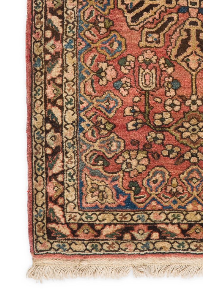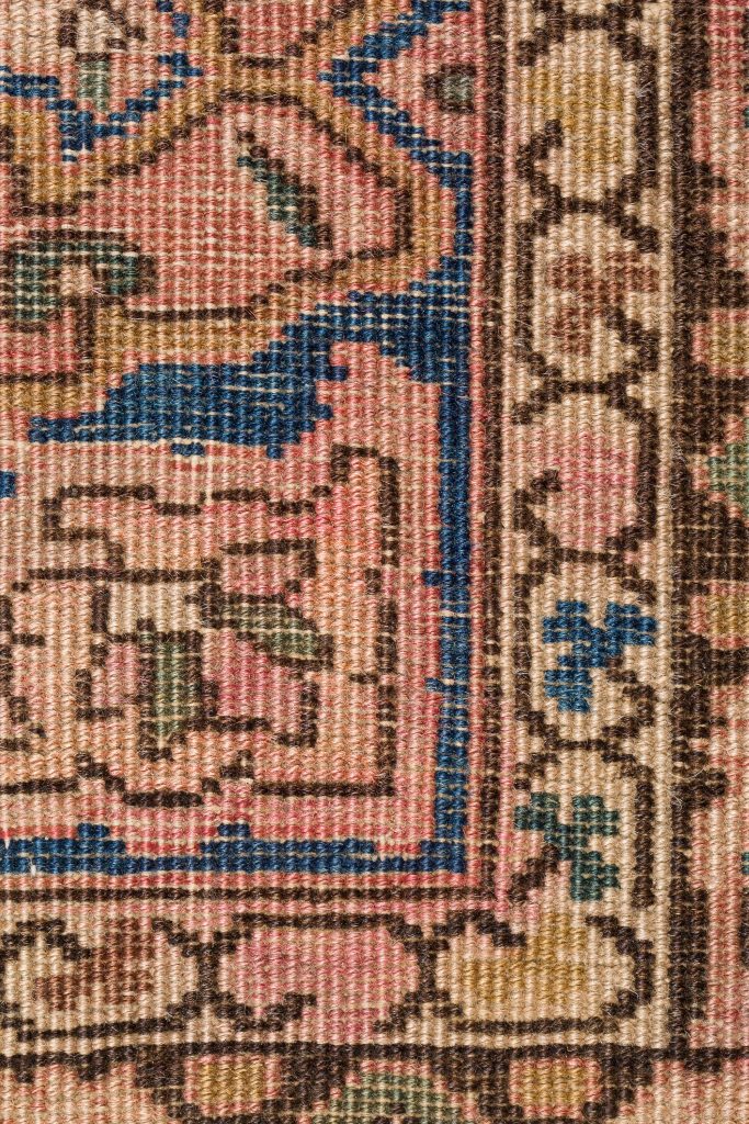 All natural dyes are paramount for the carpet to have more than just decorative value. Beyond that, various dyers had varying levels of skill and invested different lengths of time in dyeing the yarns. The “quality of color”–its radiance and level of nuance within each color–is centrally important. Certain rare colors such as Tyrian purple, saffron yellow, cochineal rose and greens add to the carpet’s value