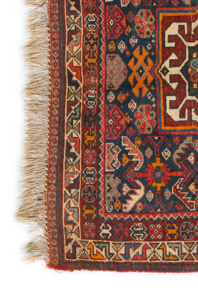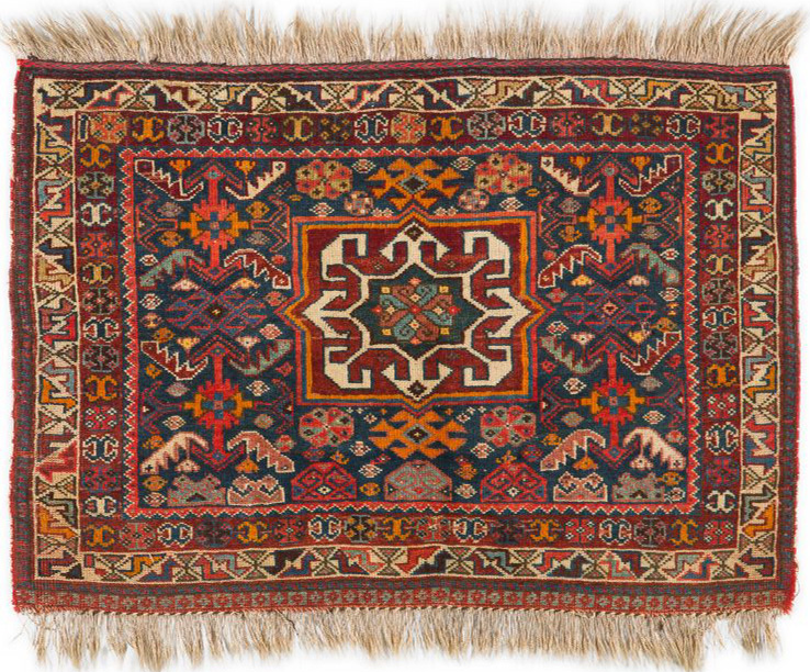 Antique Persian  Qashqai rugs (sometimes spelled Ghashghai, Kashgai, or other variations) are beautiful and intricate,  Tribal pile rugs. They get their name from Persian nomadic tribes that have lived in what is now southwest Iran for centuries. The Qashqai people lived in central Asia and the Caucasus region for many centuries before moving to their current home region. Because of this diverse history, influences from many regions are apparent in their carpets. Discerning viewers may recognize similarities to the artistic styles of the Turkmen people, Caucasians, and other tribes that live near them today.