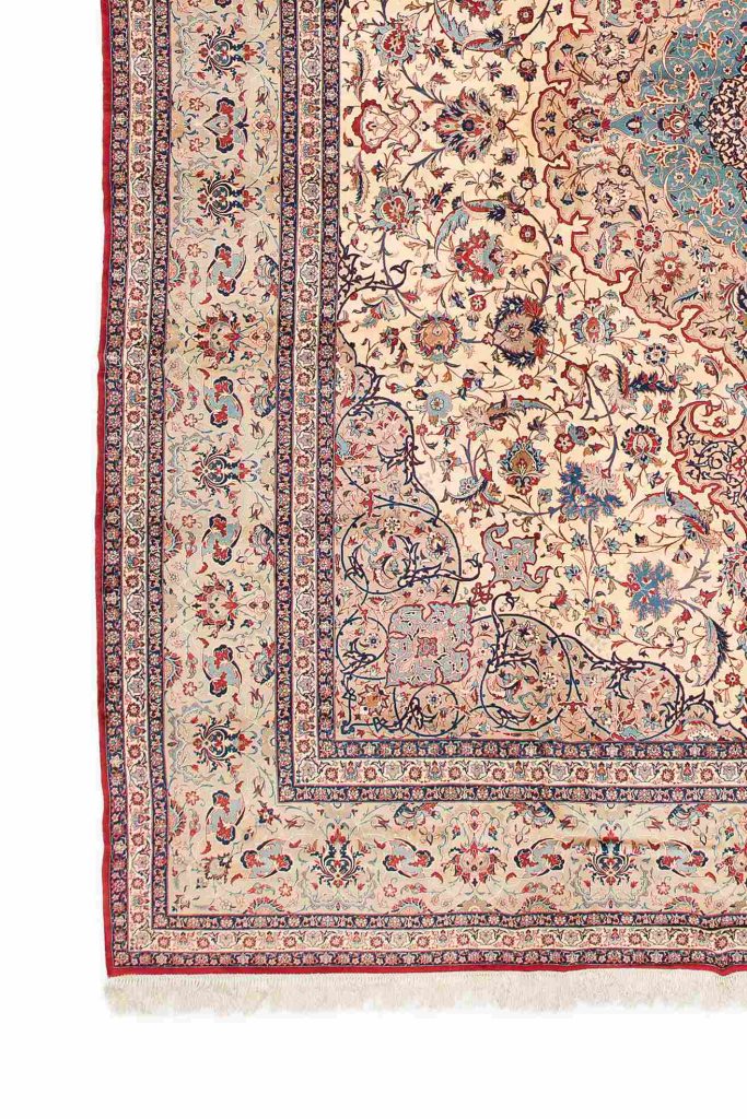 After Isfahan’s success in the garment industry, they expanded their knack for producing fine textiles by weaving some of the greatest rugs ever made in Persia. The city has long been a breeding ground for master weavers. The most famous of these is Sadegh Seirafian who spawned an Isfahan rug weaving dynasty that continues today. Antique Isfahan rugs feature enrapturing designs and luxurious materials that were also used to manufacture garments. Many of the finer carpets from the workshops of master weavers used silk wefts. However, the city’s earliest Isfahan rugs used fine hand-spun cotton.
