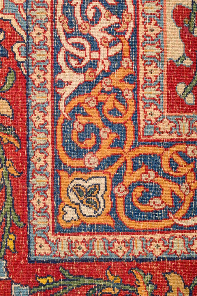 The weavers and artists in Isfahan gathered inspiration from Persia’s best achievements. They borrowed dramatic spiraling vine-scrolls with deeply re-curved tendrils from the city’s famous buildings. They also featured archetypal Persian designs that were inspired by the art and architecture of Shah Abbas, who ruled the Safavid Empire at its height. Antique Persian rugs from Isfahan incorporate flamboyant architectural medallions and unparalleled arabesques, but the city has another side too. Isfahan rugs and illustrate scenes from Persia’s outstanding literary works. The rugs of Isfahan are exceptionally attractive, captivating and classically Persian. These traits have made antique Isfahan rugs sought after by designers and collectors seeking Persia’s most iconic and archetypal rugs.All natural dyes are paramount for the carpet to have more than just decorative value. Beyond that, various dyers had varying levels of skill and invested different lengths of time in dyeing the yarns.  The “quality of color”–its radiance and level of nuance within each color–is centrally important.  Certain rare colors such as Tyrian purple, saffron yellow, cochineal rose and greens add to the carpet’s value