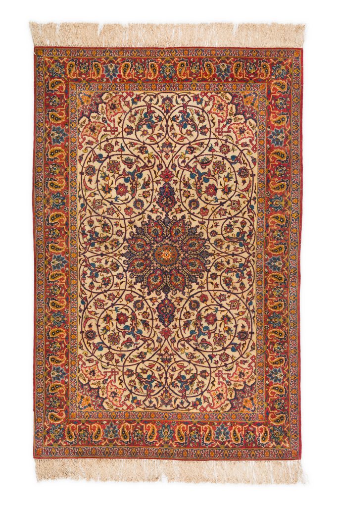 Antique Isfahan Rugs (or Esfahans Rugs), claim a very proud tradition among Persian rugs going back to Safavid times in the seventeenth century. Isfahan was then the capital of Persia and many of the court quality carpets of this period that survive today have been attributed to Isfahan. Their designs consist of sublimely delicate patterns of arabesque tendrils, palmettes, and cloud-bands in rich magentas, blues, and saffron golds. 19th century and early twentieth century antique oriental rugs from Isfahan continued the style and consummate technical virtuosity of their classical forerunners, although often with a softer, more decorative palette.