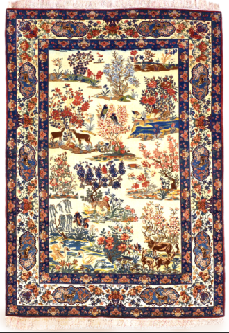 After Isfahan’s success in the garment industry, they expanded their knack for producing fine textiles by weaving some of the greatest rugs ever made in Persia. The city has long been a breeding ground for master weavers. The most famous of these is Sadegh Seirafian who spawned an Isfahan rug weaving dynasty that continues today. Antique Isfahan rugs feature enrapturing designs and luxurious materials that were also used to manufacture garments. Many of the finer carpets from the workshops of master weavers used silk wefts. However, the city’s earliest Isfahan rugs used fine hand-spun cotton.