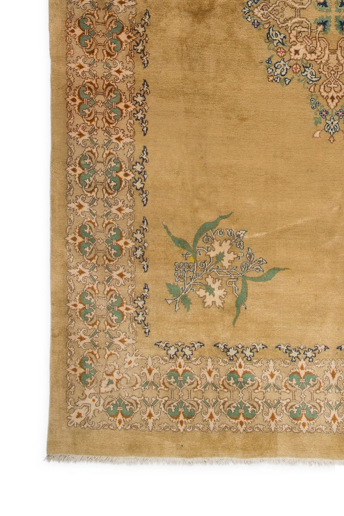 Antique Kashan Rugs are among the very finest Persian rugs and carpets. Kashan was a center of silk production since Safavid times and some of the best classical Persian silk rugs have been attributed to Kashan. At the end of the nineteenth century the weavers there began to produce high quality rugs and carpets as well, which continued the high standards of design and technique established in the classical era. The very best antique Kashans carpets are known as Motashem Kashan. They often have medallion designs, but allover Kashans are not uncommon. The palette can be deep and rich in the classical tradition, or it can utilize softer hues appropriate to modern decor.