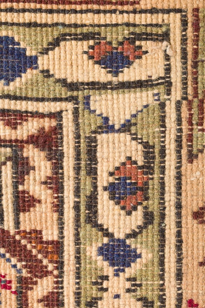 All natural dyes are paramount for the carpet to have more than just decorative value. Beyond that, various dyers had varying levels of skill and invested different lengths of time in dyeing the yarns. The “quality of color”–its radiance and level of nuance within each color–is centrally important. Certain rare colors such as Tyrian purple, saffron yellow, cochineal rose and greens add to the carpet’s value