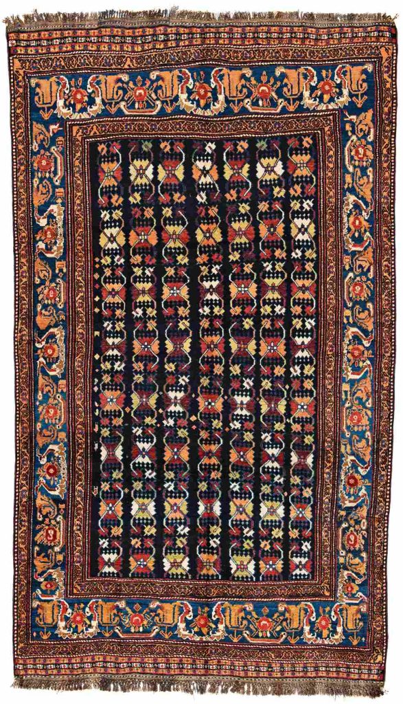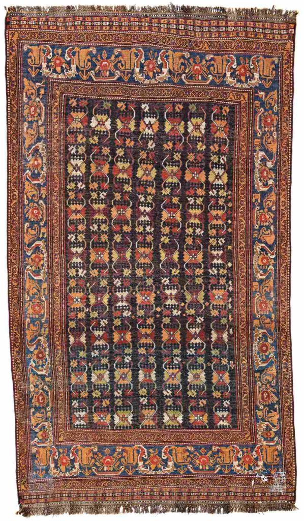 Geometrically patterned Persian carpets, woven by nomadic tribes, are decorated with linear elements composed of vertical,
