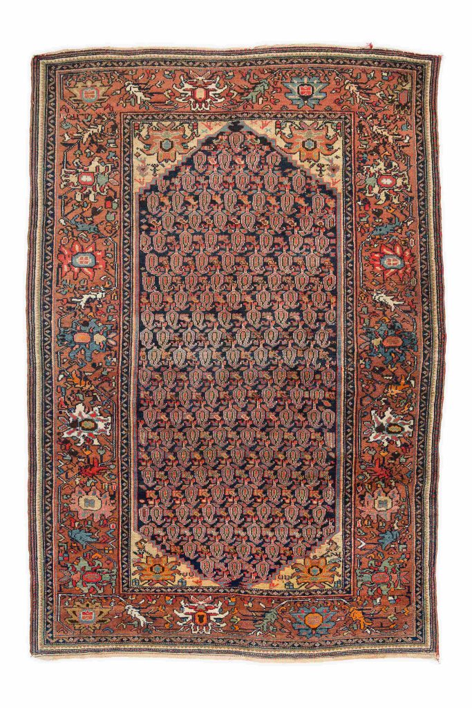 Malayer Rugs – Antique rugs from the Malayer region embody an angular northwestern style that is best defined by its diversity in style and color. Malayer is a city and an eponymous county located within the province of Hamadan. It is located between Arak and the city of Hamadan. Local weavers produced a spectacular array of traditional patterns ranging from dense allover motifs to lozenge-shaped medallions that are placed over chic monochromatic grounds. Although angular motifs are favored, some of the finer Herati patterns feature subtle curvilinear details. One of the charming constants of antique Malayer rugs is the importance placed on creating richly detailed borders that rival the spectacular patterns featured within the field. Weavers in Malayer consistently put great effort into creating exquisite borders.