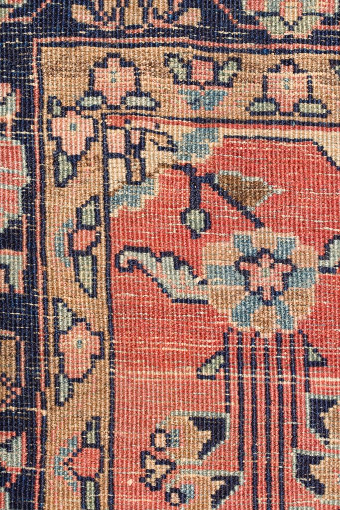 All natural dyes are paramount for the carpet to have more than just decorative value. Beyond that, various dyers had varying levels of skill and invested different lengths of time in dyeing the yarns. The “quality of color”–its radiance and level of nuance within each color–is centrally important. Certain rare colors such as Tyrian purple, saffron yellow, cochineal rose and greens add to the carpet’s value