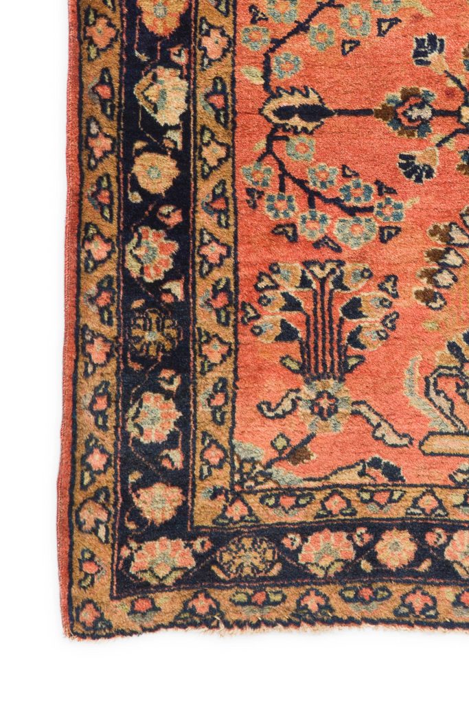 Sarouk Rugs– The thickness of the luxurious pile allows Sarouk rugs to withstand the level of foot traffic that would be typical in hallways, common rooms and foyers. The style, quality and durability of Sarouk rugs have made them extremely popular with western consumers then and now. However, they weren’t always so popular. In the early 1900s, painted Sarouks that were over-dyed in vibrant hues of garnet and salmon-pink brought regional rugs to a new height of popularity. Although purists never appreciate these alterations, painted Sarouks are regional icons.