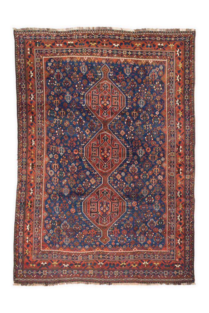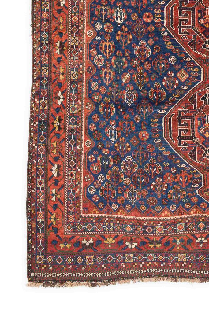 Today, it is possible to find Qashqai area rugs and runners. These vary in size, but tend to be approximately four feet to nine feet long and four feet to six feet wide. These rugs are often made on cotton foundations with soft wool pile.All natural dyes are paramount for the carpet to have more than just decorative value. Beyond that, various dyers had varying levels of skill and invested different lengths of time in dyeing the yarns.  The “quality of color”–its radiance and level of nuance within each color–is centrally important.  Certain rare colors such as Tyrian purple, saffron yellow, cochineal rose and greens add to the carpet’s value
